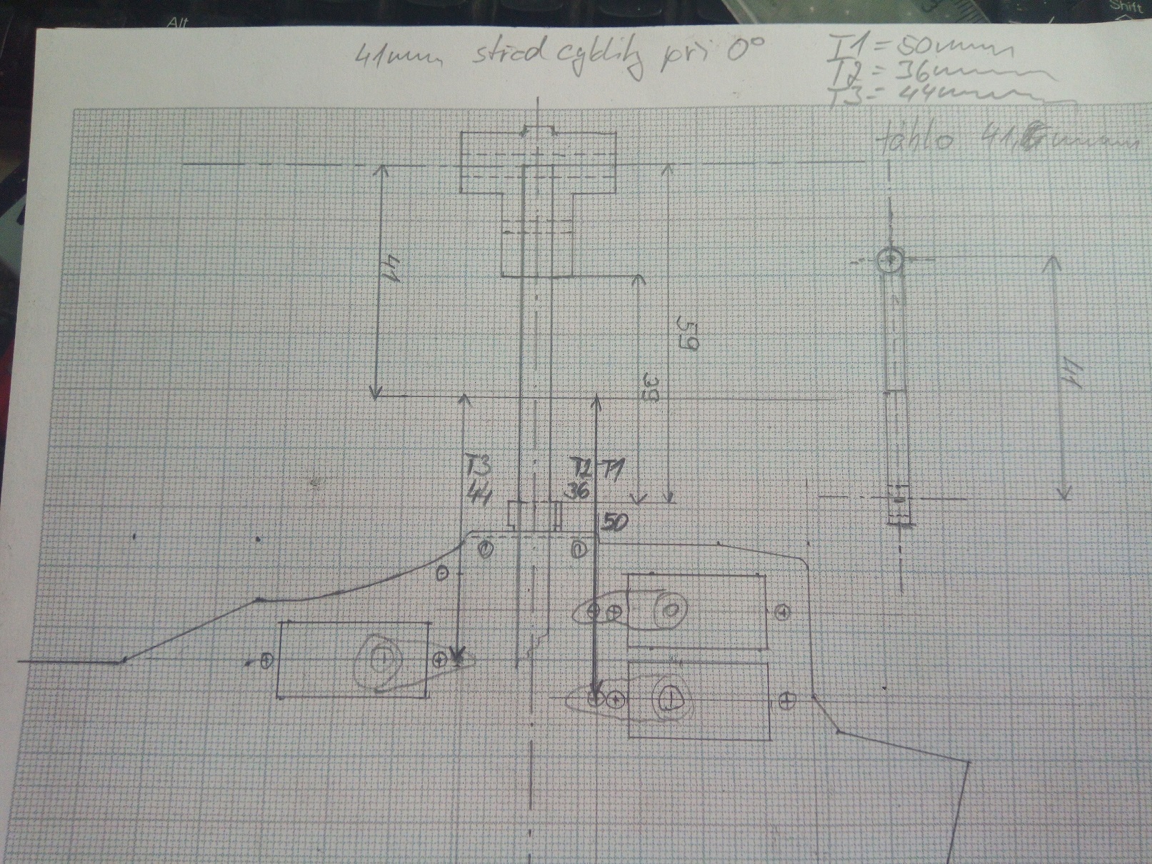 Délka táhel stejná, možná tak u nějakého super modelu. Já mám každé táhlo jinak dlouhé. Tak jsem si to nakreslil a něco my vyšlo, mělo by to být přesné. Pomocí měrky na táhla to nastavím jak mi to vyšlo a uvidím. A postup použiju jak si mi napsal a je to.
