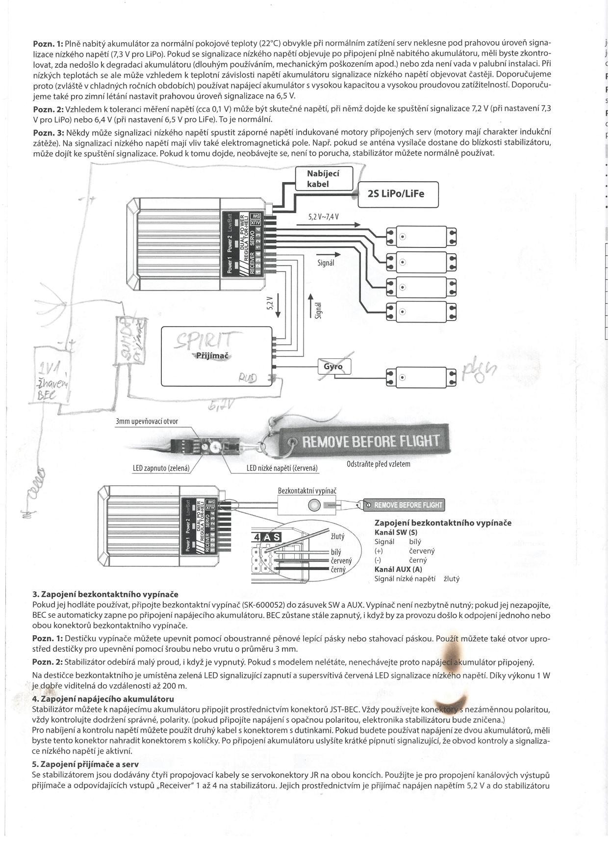 Zdravím, skládám ty serva a elektriku a nastala taková situace a nevím jestli to vadí nebo ne. Jde o to, že jsem nechal původní jednotku 2v1 od Aligen žhavení a Bec z toho napájím přijímač. A druhej jsem koupil dvoukanálovej SKYRC na ty HV serva, viz příloha schema. A ted to nejdůležitější, ve spiritovi se mi sejdou napětí z obou BEC 5,2V, kdyby to nevadilo, je vyhoda že to mám zálohované ze dvou zdrojů, pokud to vadí, oddělím to diodou a bude pokoj a nebo spíš uberu z propojky napájecí drátik. Jak to mám řešit, děkuji
