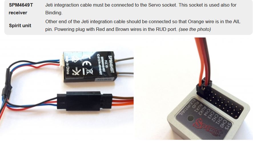 I use the Spektrum and ESC kabel from your Shop, and SPM4649T + 2 Spektrum SAT.