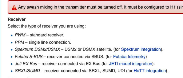 The Spektrum 4649T receiver has something to do with SRXL. I'm no electronics expert, so I don't know exactly how, but this I've heard. So when I was setting up my very first Spirit not too long ago via the Wizard, I selected SRXL as the receiver type, not DSMX. That seemed correct since the Spektrum option in the Wizard lists only "Satellite" so I thought if I had anything other than a satellite I should select a different option.