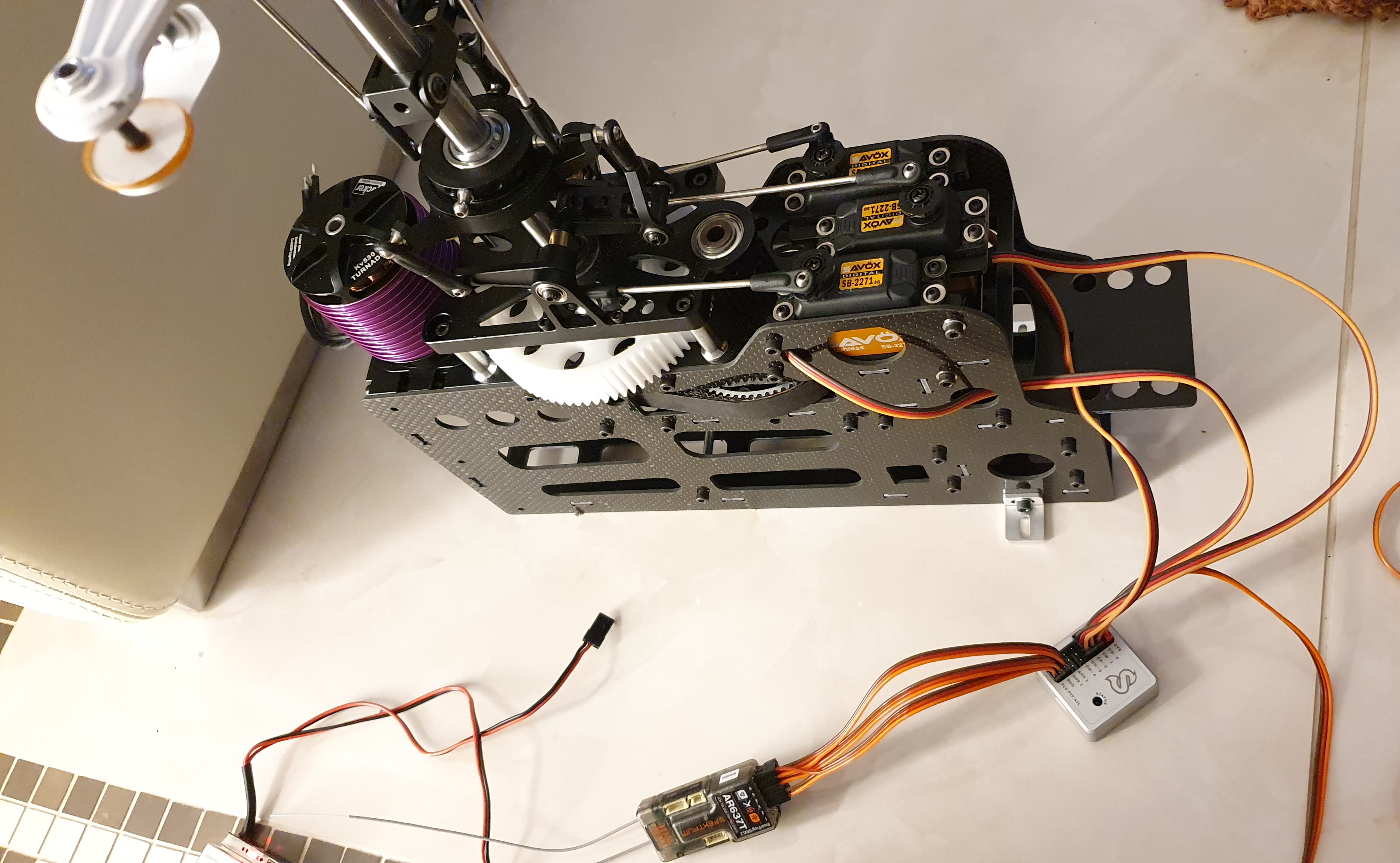Tak za prvé musíš mít nastavenou cykliku CCPM 120° (obráceně) - výškovku máš vepředu.