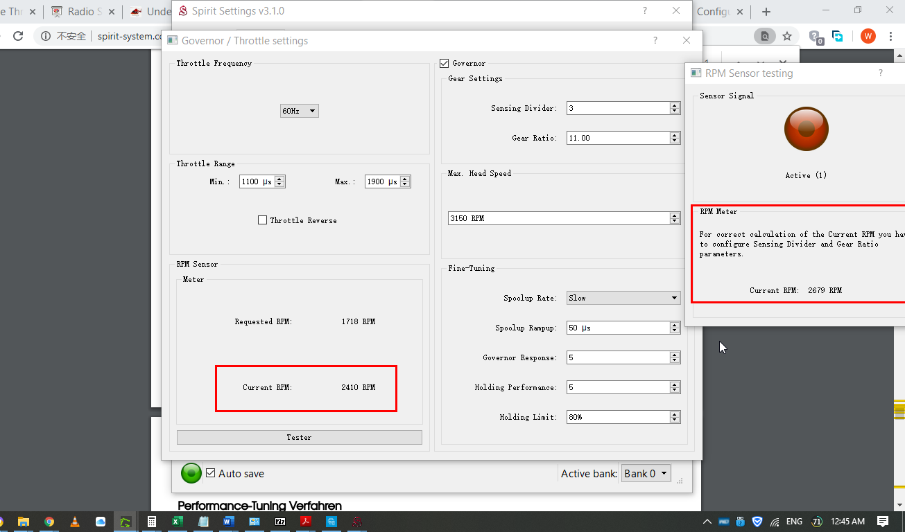 2. how to set the „requested rpm“ ? I do not know where this „1718“ has been set and where it can be set? (Based on the value, I think it near to 3150 x 55% (T16SZ’s idleup 1 throttle setting = 55%)