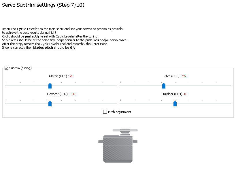When I am in step 7 of the wizard, after leveling the plate, it is written that if everything in order I should have zero pitch to the blades, okay.