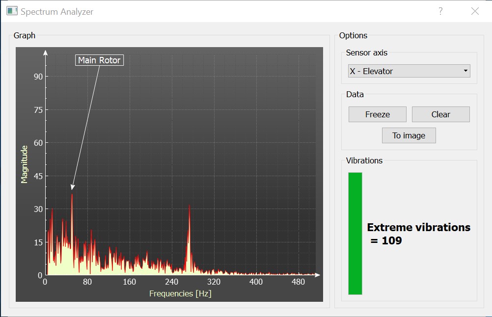 I did the vibes analys in software 3.1 Spirit RS without blades,and the text says extremley high vibes in ele and yaw 110%,the ail ok.but the graph shows only 22% in ele and yaw.the TX jetis log shows 10%.I removed rotorhead and swashplate the text,still extremley high vibs 110% the graph 16%.