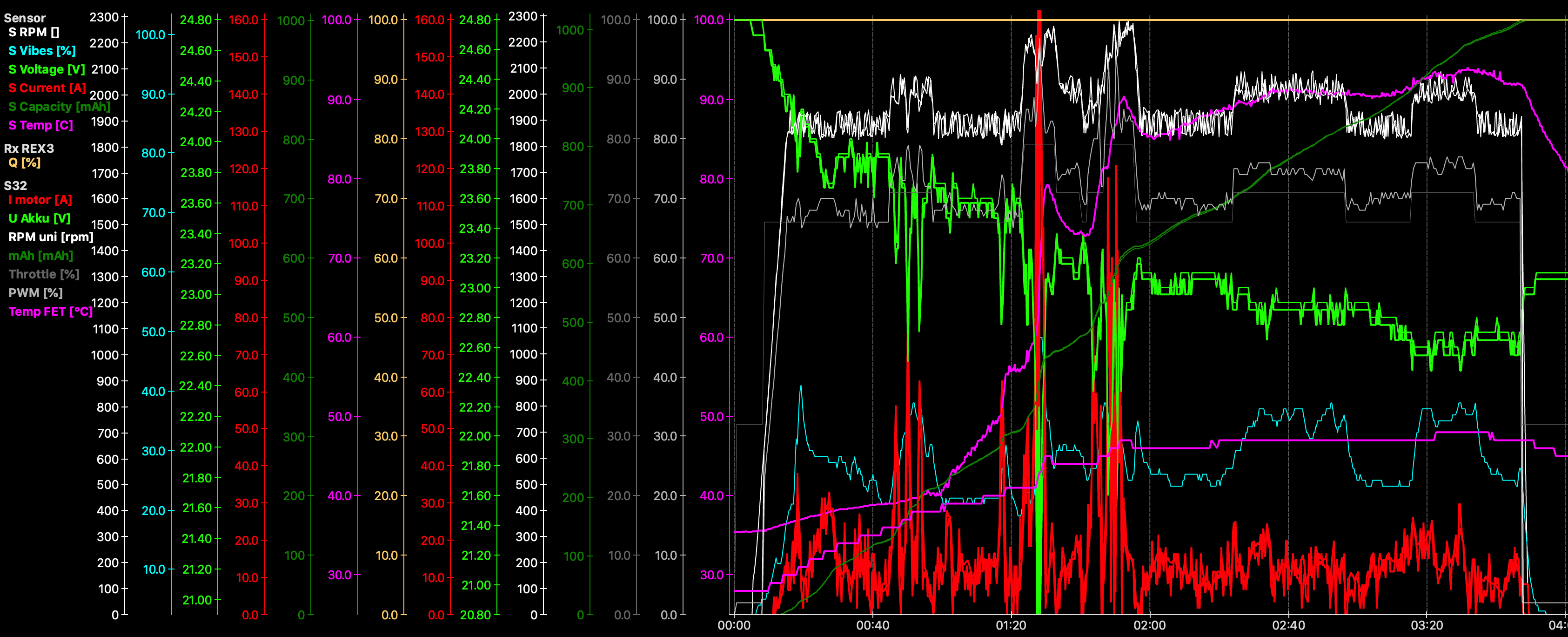attached you can find a pic of the log (if you need the full log, no problem) - i have configured same colors for same values: as you can see all common values do match +/- perfectly, the only one being not OK is the purple one: Spirit temp. quickly was up at 93°C and j-log reported a max. FET temp. of 48°C.