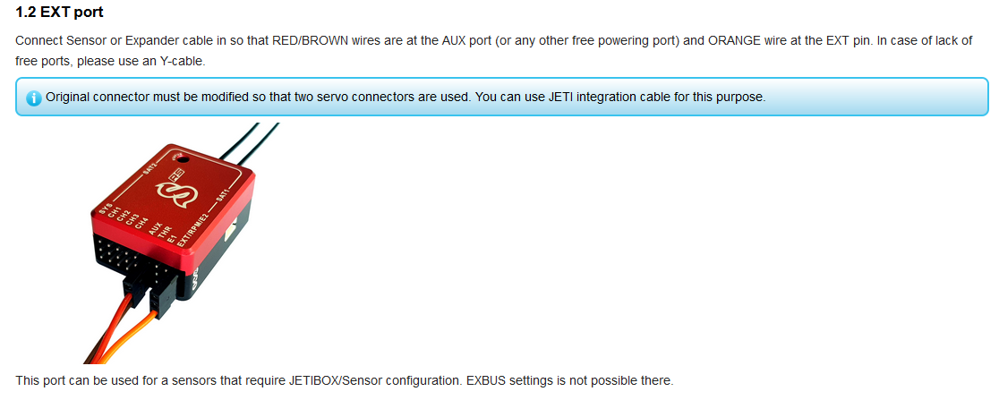 ZeXx86 wrote:Also I hope you have not connected a Telemetry sensor at the EXT/RPM/E2 port. This will cause crash. E2 pin should be unused.