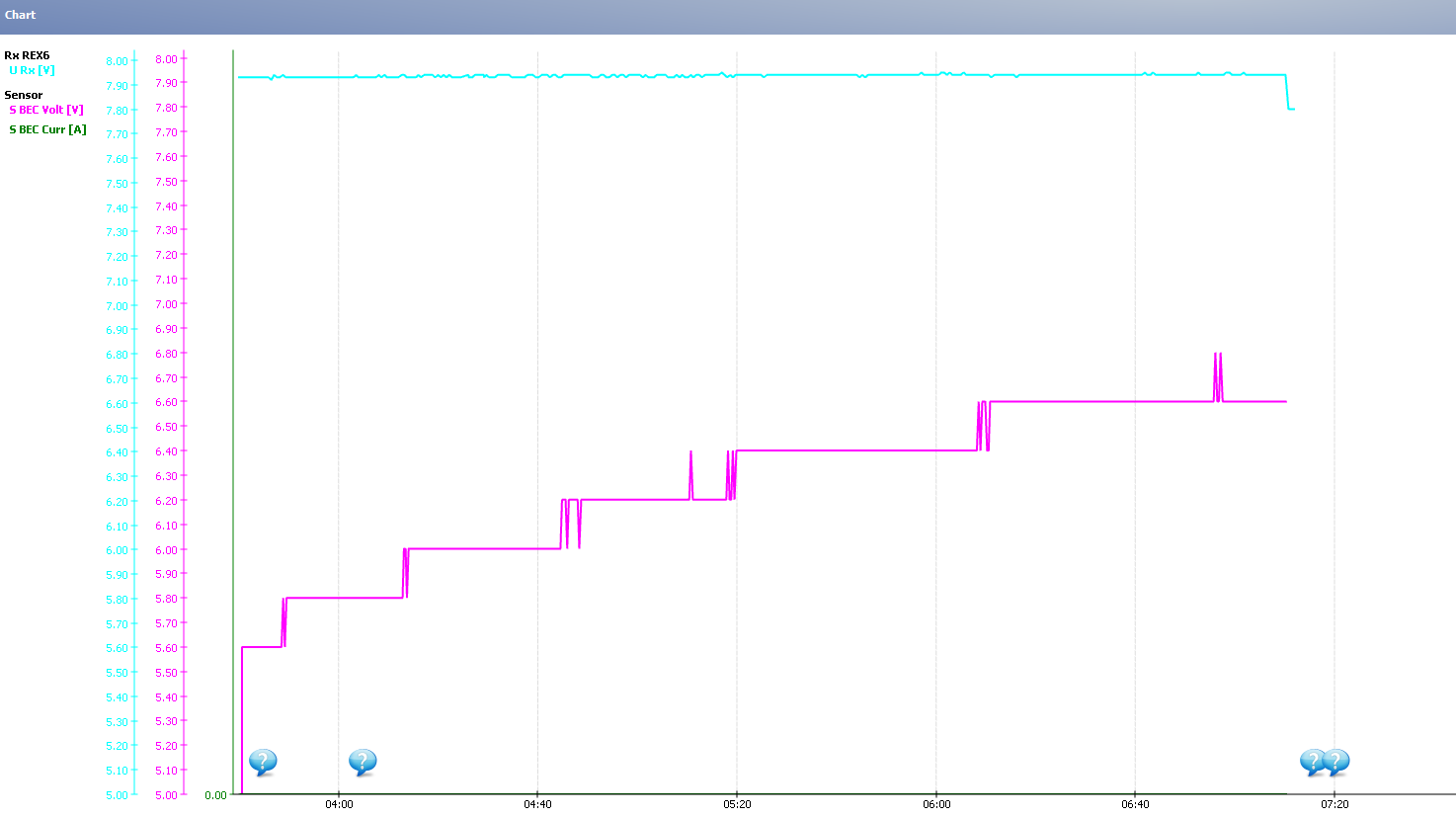 I was looking through the logs collected by the Jeti DS24 from the Spirit Pro, which in turn collects the data from a Jive Pro and saw that the BEC Voltage measured by the Jeti receiver is different from the BEC Voltage measured by the Jive. The one from the Jeti is correct.