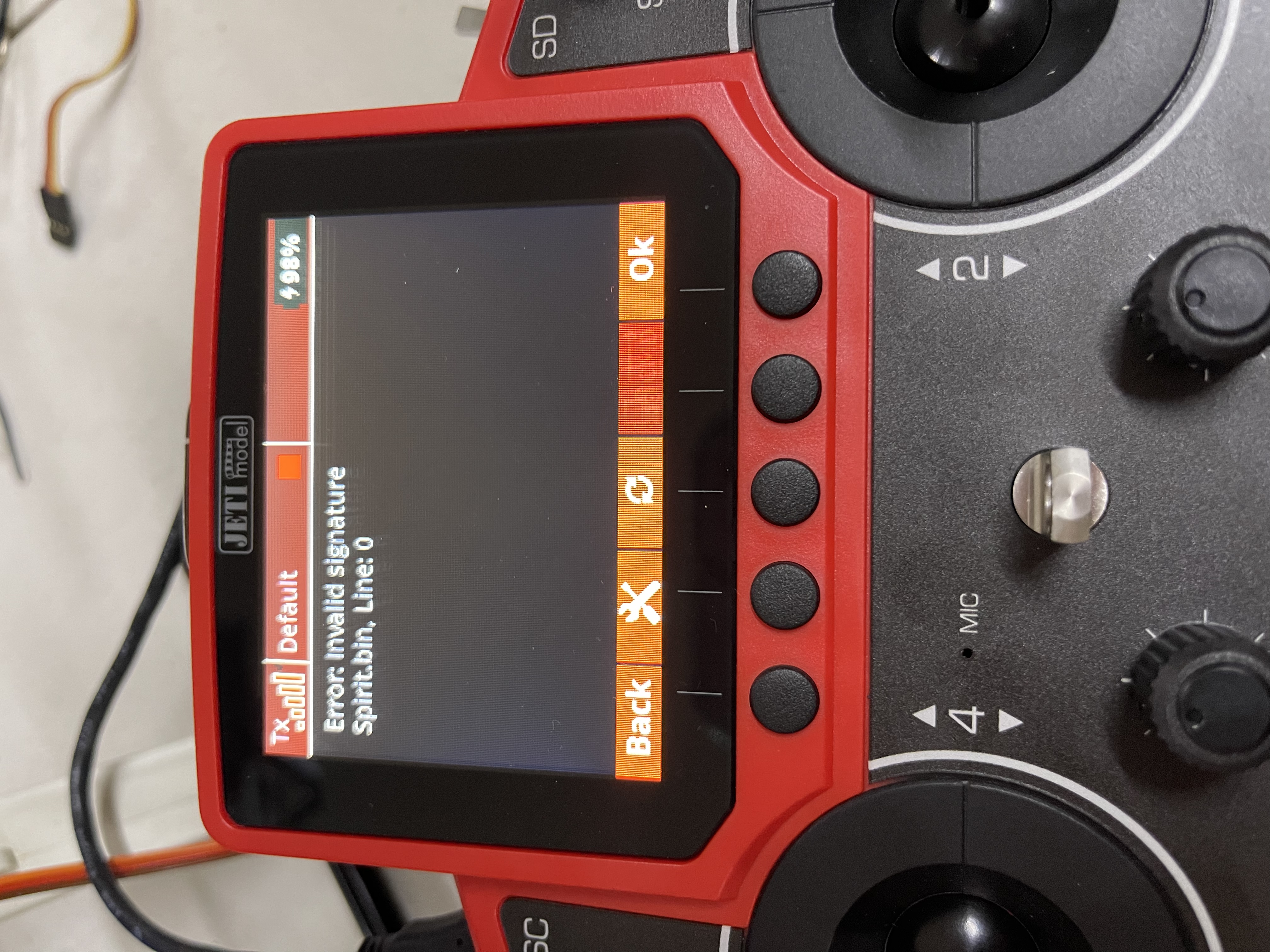 ... after updating the DS-12 in Jeti Studio: you most probably have to (again) copy the Spirit integration files to the DS-12. the Jeti DS-12 update is overwriting the integration files with another (older?) version - just download integration 3.4.0 and copy it. should work again...