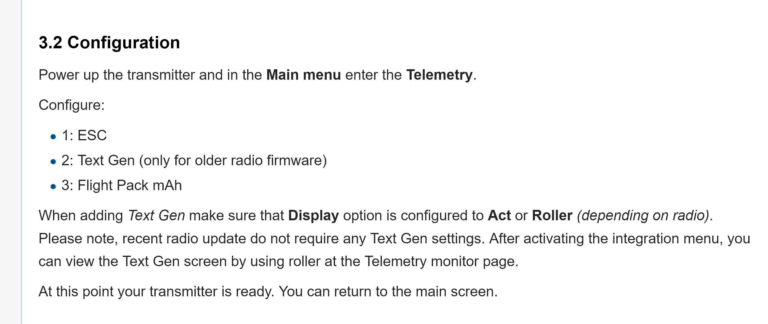 Manual says to set 1: to ESC. Not an option in TX.
