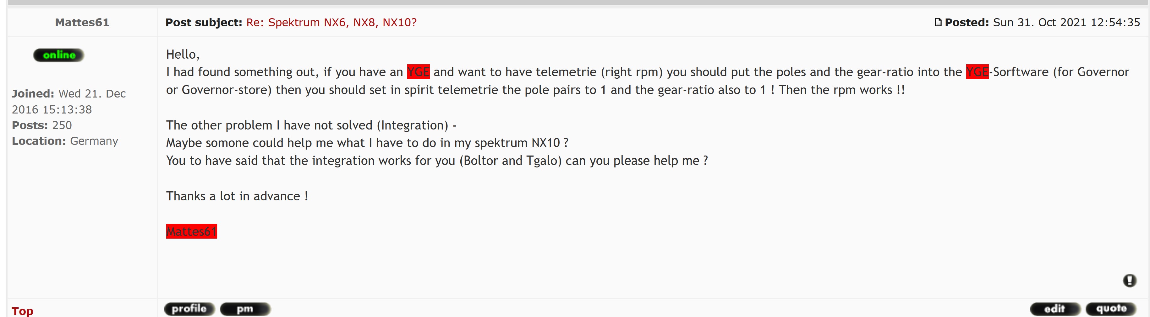 here the thread where I had a pob with readout of rpm (yge esc): Greetings