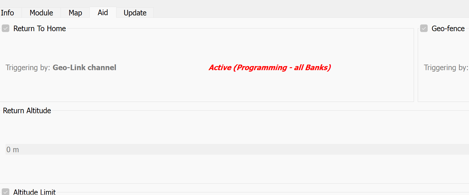 Hi, i must say RTH and Geolink other features always saves the day ! I have 2 bank configured with RTH and Geofence for 2 sites i use it the most. I want to use bank 2 to configure a RTH when i just drop in a site i don't fly often. I like the feature to enable configure of the RTH by bank and did change my settings in the radio to support this new feature.
