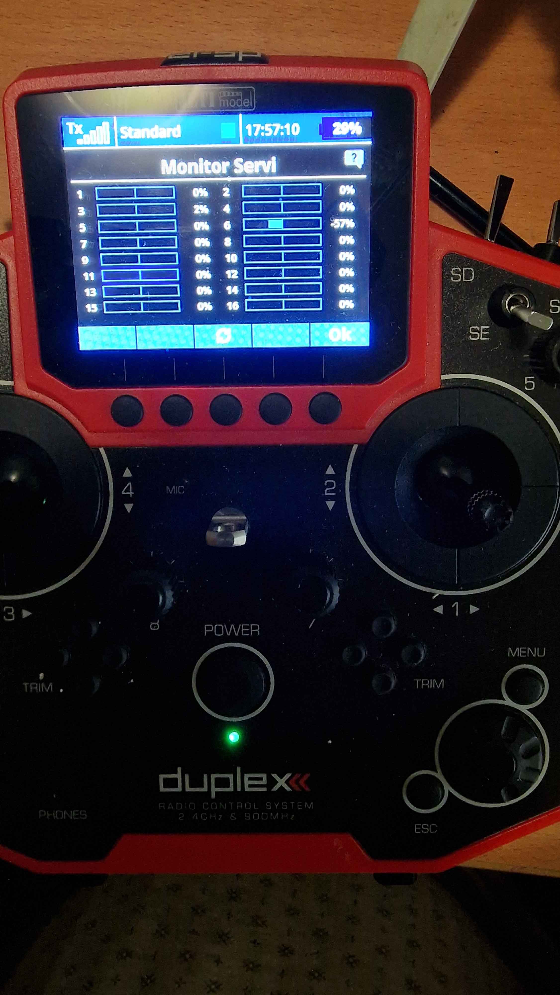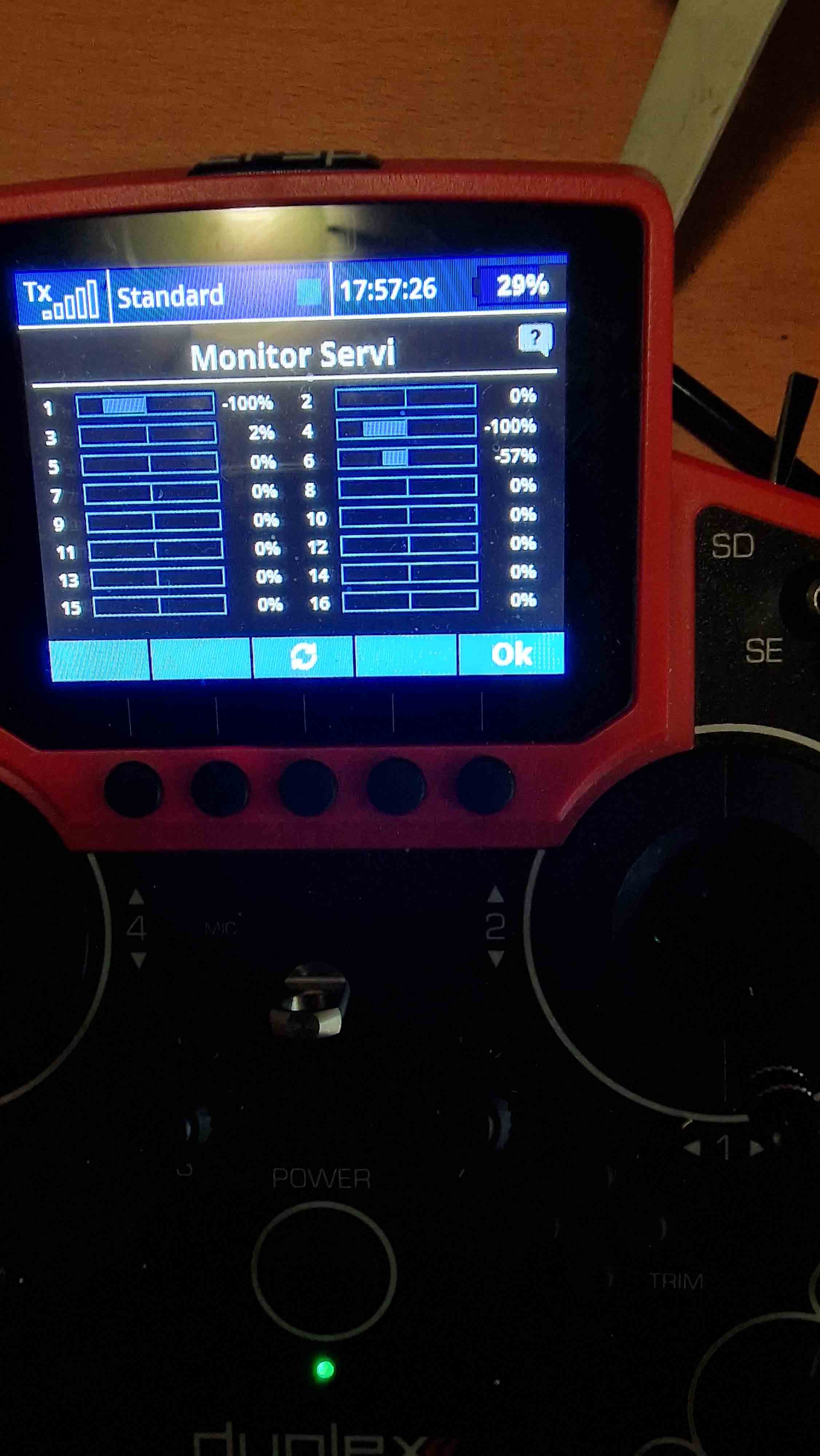When the stick is at minimum has value -100% as you can see in the picture which I attach called "minimo.jpg" and this value in in the radio it is accurate