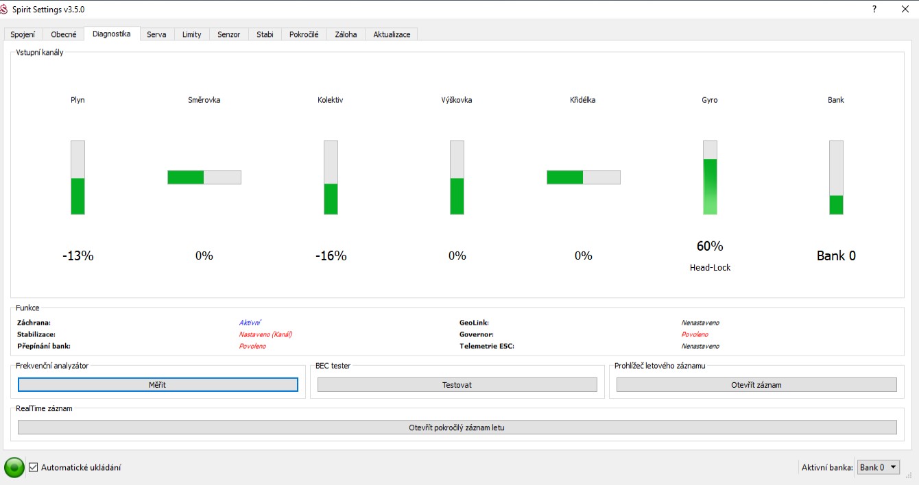 Tak dnes jsem zkoušel znovu automatickou záchranu, nastavil jsem kolektiv na 20%, abych vrtulník viděl. Vrtulník po aktivaci stále drží záchránu a stále stoupá, na záporný kolektiv nereaguje. Zkoušel jsem aktivovat stabilizaci a funguje správně.