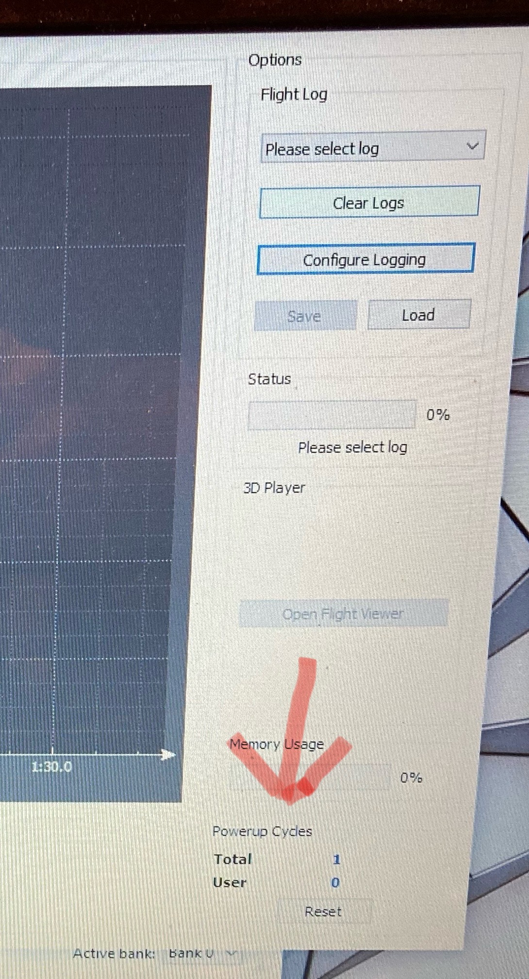 After the flight I found no data on the logger , and it showed as if it had never been configured or enabled , ( which it had for several previous flights)
