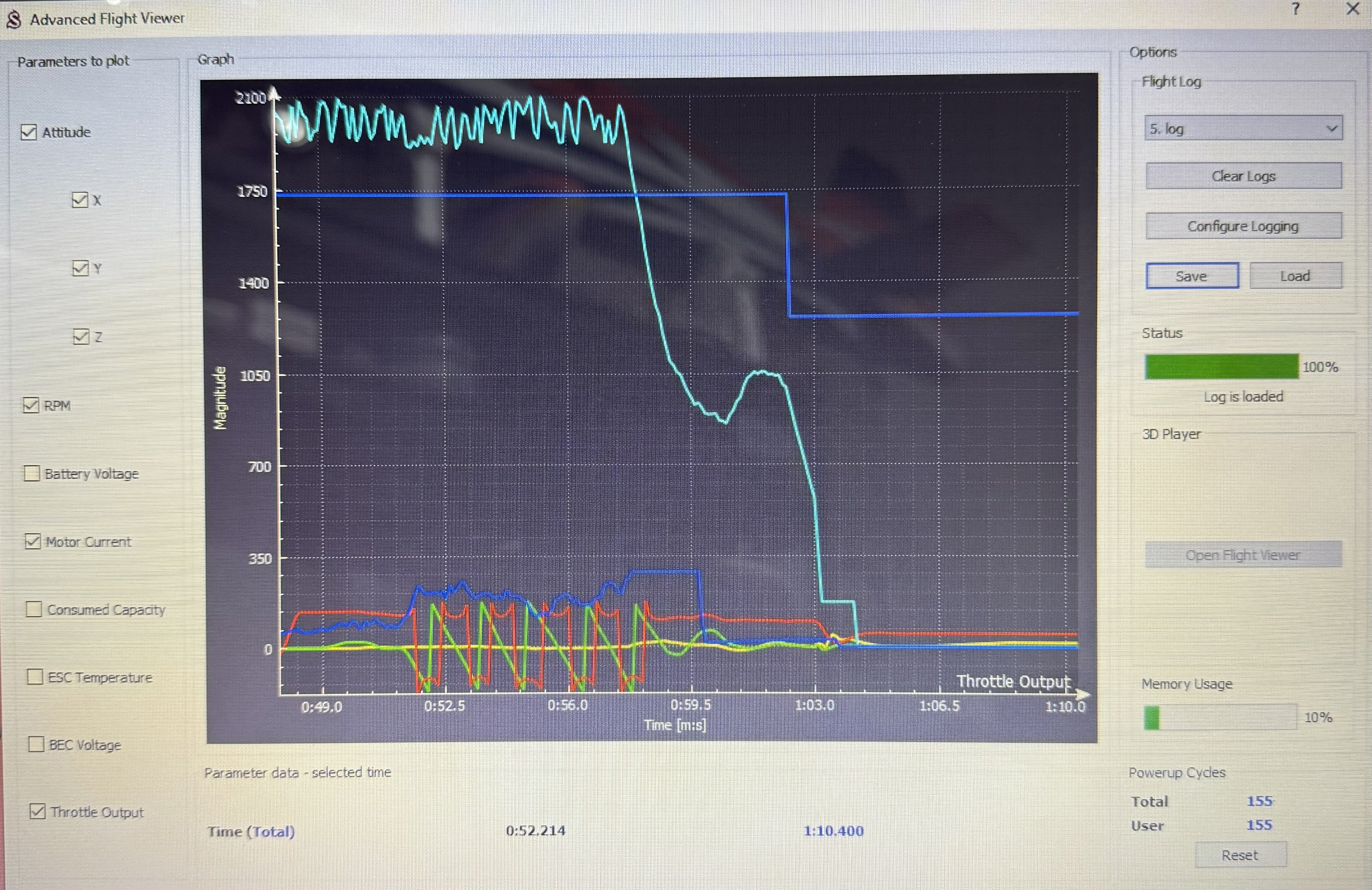 The two new graphs show exactly the same behavior although no drops are seen (one of the pictures has the Throttle Out plot green faint).