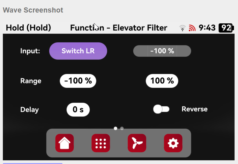 I went to the Function menu and set the input to the LR switch. By swiping left, I assigned a parameter—for instance, the elevator filter. After repowering the system, I monitored the parameter in the Advanced menu, but when I flip the LR switch, the parameter value doesn’t change.