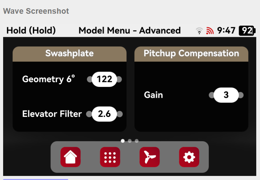 Maybe my setup isn’t optimal. I have a flight mode called “Hold” (“Throttle Cut”) that overrides all other flight modes. Because of this, when Hold is activated, I can’t switch to the Idle-Up 1–3 flight modes, which would be necessary to adjust a tuning parameter for those modes—for example, SwashplateStopSmoothing. So far, I’ve been landing and changing the parameter while on the ground.