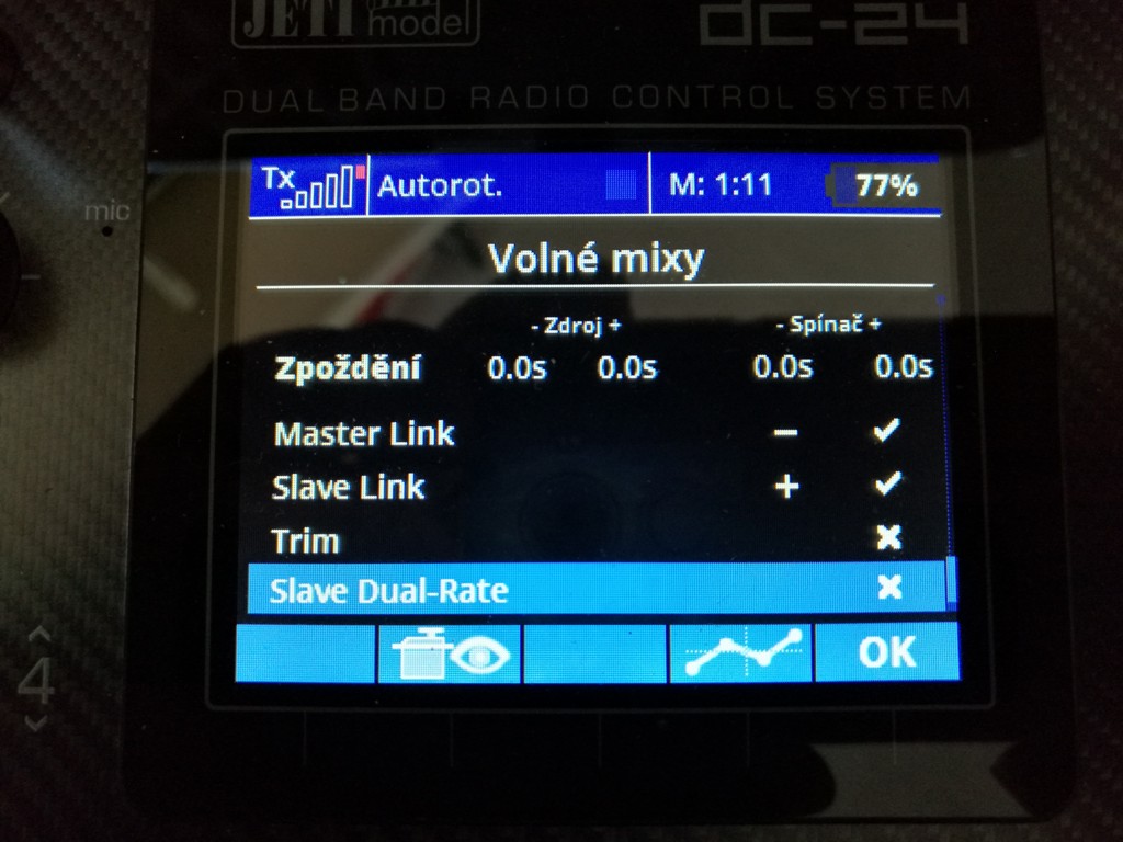 Až půjdu do dílny tak tě nafotím jak to mam v mé DS14, nicméně můžeš mě poslat nastavení ze Spirita a nejlépe i model z vysílače?