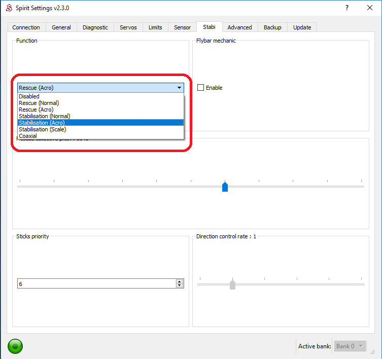 Stabilisation (Normal) for more advanced and Acro for learning acrobatics.