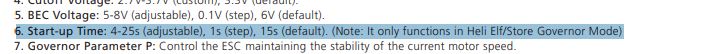 but the soft start in my esc does not work in any way, both with governor enabled and disabled, in esc and with governor enabled or disabled in spirit. always starts in the same way the motor, slowly then suddenly accelerates