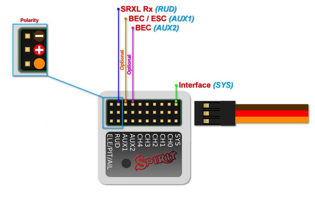 2. now Spirit needs to know that signal coming on channel #9 is to be used for "Stabi Function": in Spirit settings app, on page "General" go to "Channels"... in the right half of the window you can assign "functions". here you can add "F: Stabi Function" and set the channel to #9 (in our example). once you have done this, test it immediately... check the result showed on the screen (result on heli after step 3) - it must work correctly, maybe you have to reverse the channel in your transmitter.