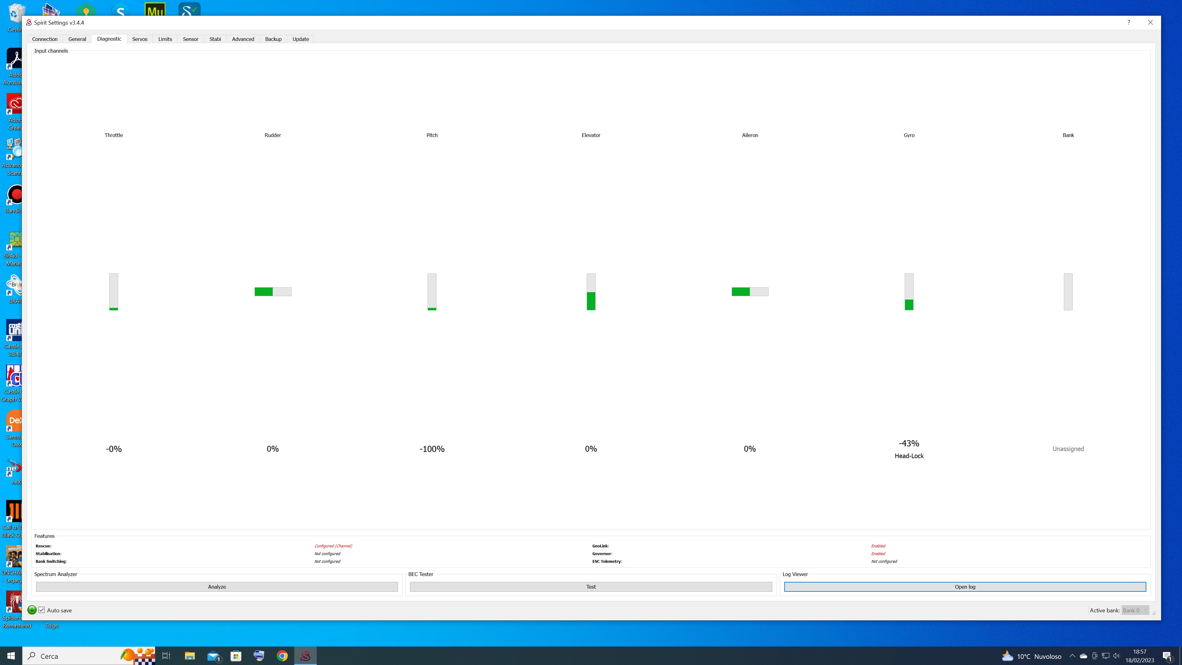 I have activated the time and put the percentage after the same to the percentage before, i set rescue collective pitch and hovering collective pitch all two to 65% and before regaining control I have to place the stick to the 65% and I avoid the shot