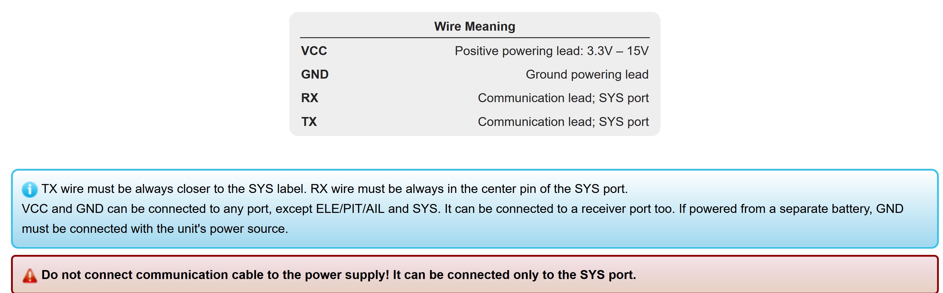 I think it's not about using ground from SYS port, but of connecting WiFi-Link and Sprit unit grounds together. If WiFi-Link is powered from the unit or BEC, it happens naturally. But as I power it from a 2s Lipo, they need to be connected together. That's how I understand it (or wrong?).Mattes61 wrote:I think you can not use the GND from the Sys-Port as you see here -