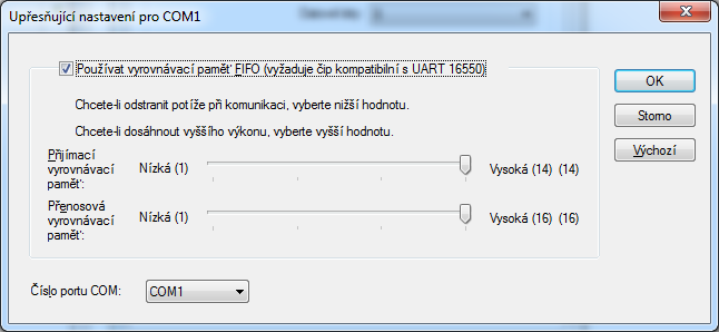 Ještě jsem zkoušel vypínat buffer pro COM port, ale taky to nepomohlo - viz další screen.
