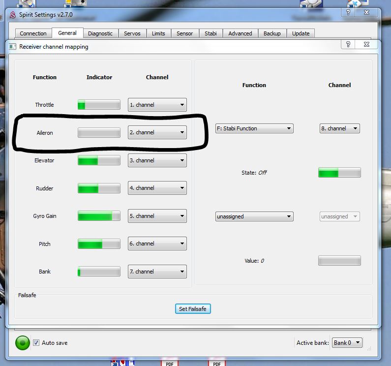On the displays when there is a breakdown, the aileron servo is problematic, see screen photos.