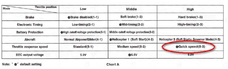 Bohužel se mi zatím nepodařilo změnit v ESC rychlost odezvy plynu na rychlejší.
