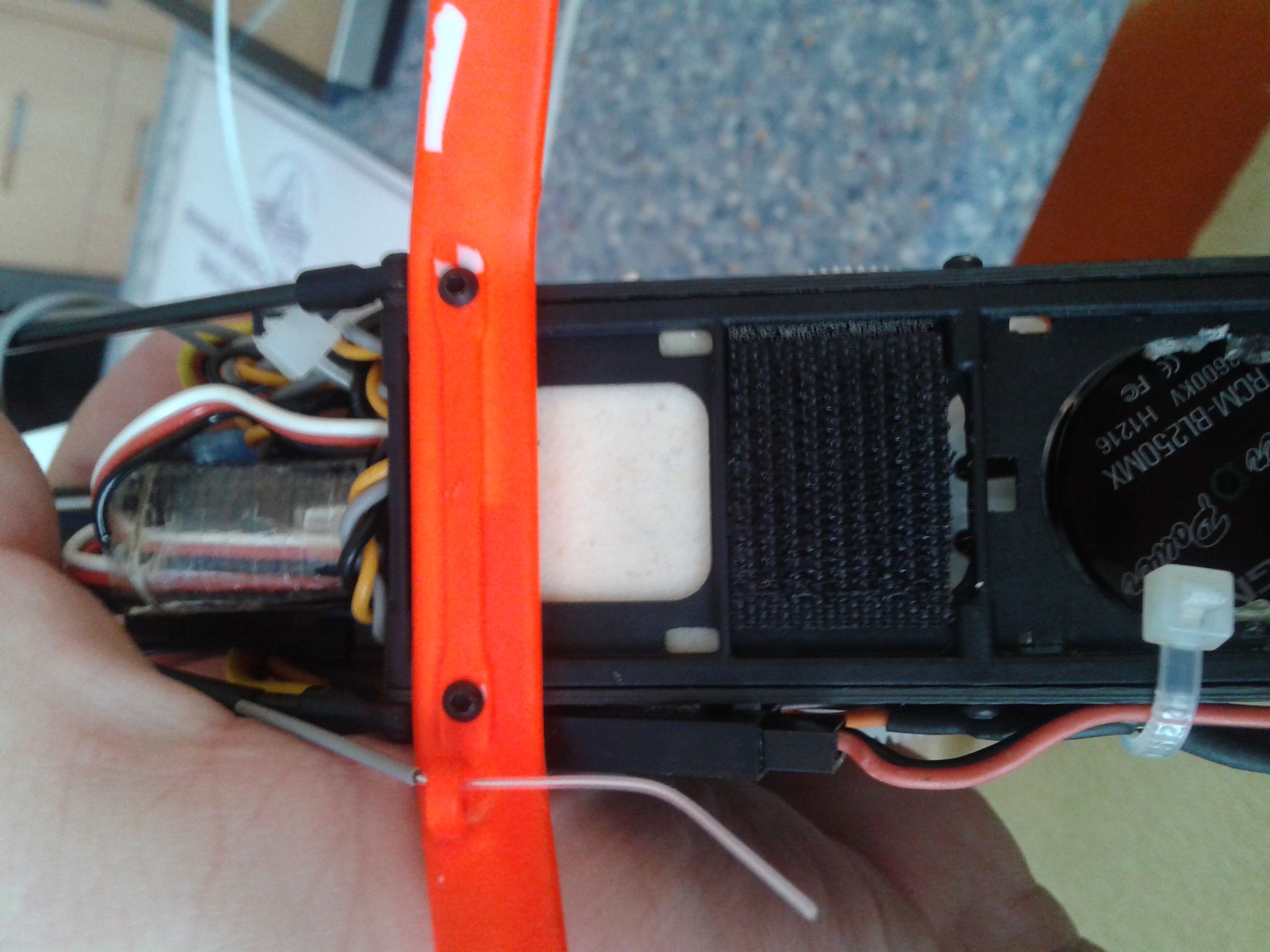 Jednotka by mela byt podlepena uplne cela nebo alespon tak, aby se nemohla za zadnou cenu chvet do stran. Pak se vytvareji vibrace navic jen tim, ze jednotka na modelu osciluje. Dodana oboustranka funguje dobre. Nemela by tam byt vysoka a mekka oboustranka nebo nejaka gelova podlozka.