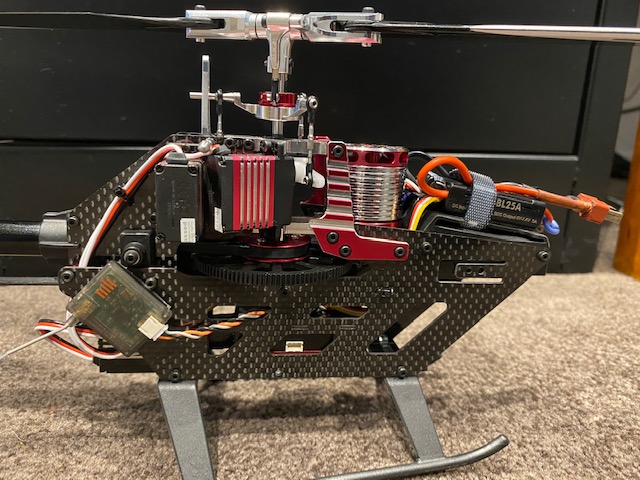I have just purchased a brand new T-Rex 300x with Spirit 2 and GeoLink. The T-Rex is completely standard and I have mounted the Spirit 2 upside down under the rotor main shaft, parallel with the main blades and the tail boom. My Radio is a Spektrum DX9 Black and the rx plugged into the Spirit 2 (in SAT1) is a Spektrum SPM9745 DSMX. I have not installed the GeoLink yet as I want to get the Spirit 2 running properly first. I have attached pictures of the install.
