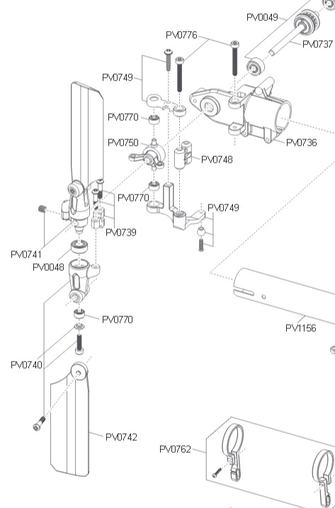 Ona je ta mechanika na Mini Titanovi dost jednoducha, viz obrazek. Na hlave vyrovnavaciho rotoru je primo lozisko, grip, lozisko, podlozka, sroub. Jeste jednou jsem to prosel a prijde mi, ze to mam spravne. Zkusil jsem nechat trochu mezeru pri uchyceni gripu ke spojce, ale efekt zadny...