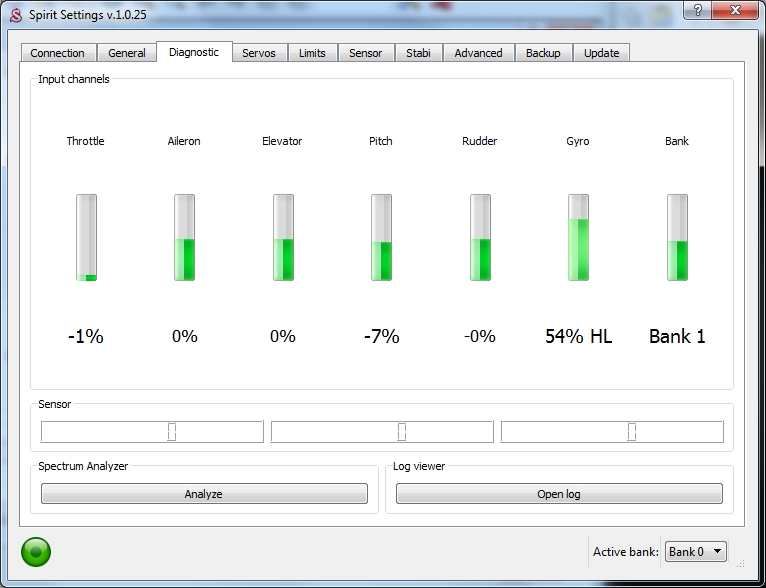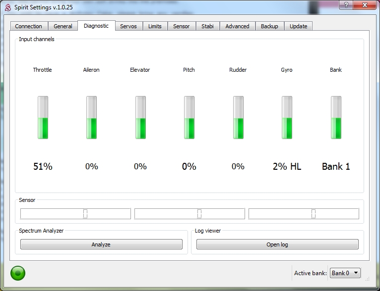 There obviously was no response from the Heli, but the diag screen showed the throttle channel as 31%