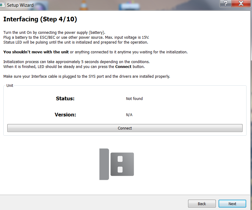 Connect BEC cable to the unit directly (for example at AUX port).