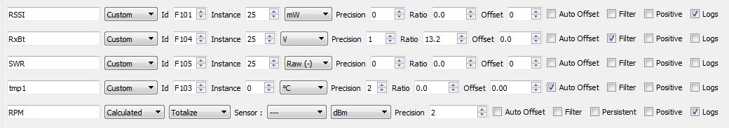 I setup my new openTX model files and based on the Spirit Manual Wiki I set the following telemetry values: