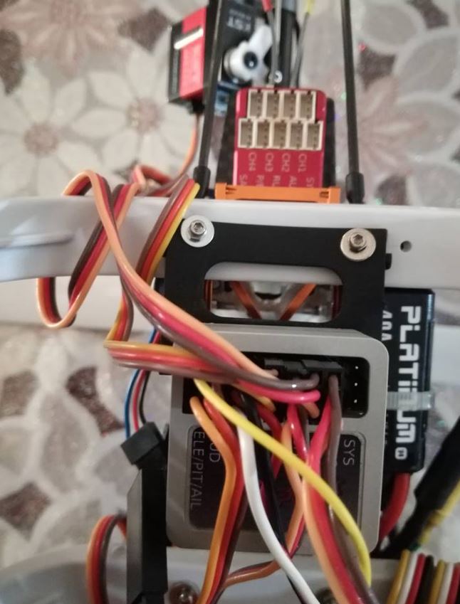 I have the pitch servo that remains stationary after initialization, as if it were off . I installed on my trex 250 two units at the same time, in order to connect only the cables to understand the problem where it was. With my bitter surprise I discover that it is the micro spirit unit that gives me this problem, in fact my Spirit pro that I had mounted on another heli, disassembled to do this exclusion test and mounted simultaneously on my trex 250 does not give me these problems.