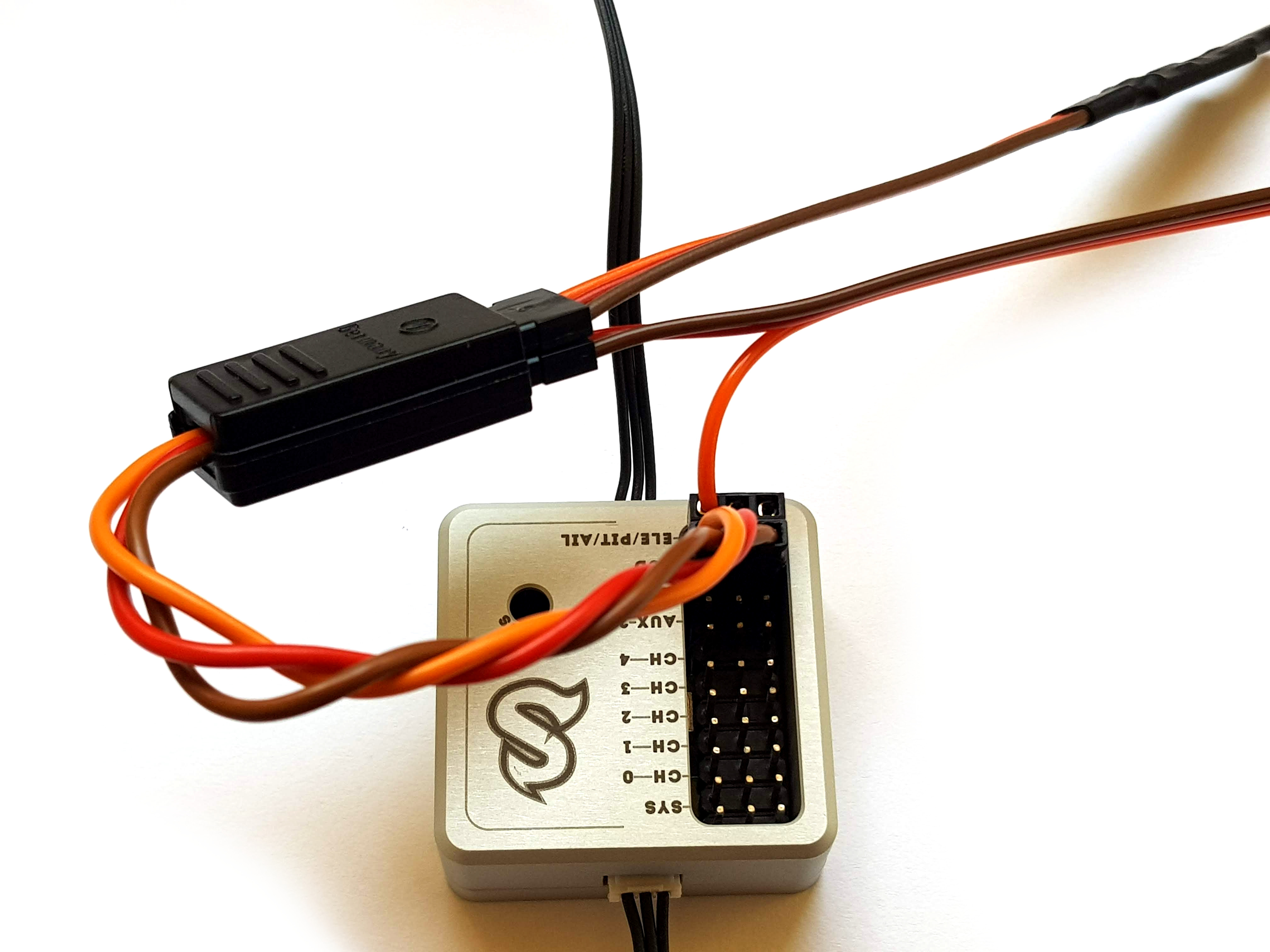You can also connect 4th Spektrum satellite instead of SPM4649T - it is only necessary to modify Spektrum adapter so that signal wire is separately connected at the AIL pin.