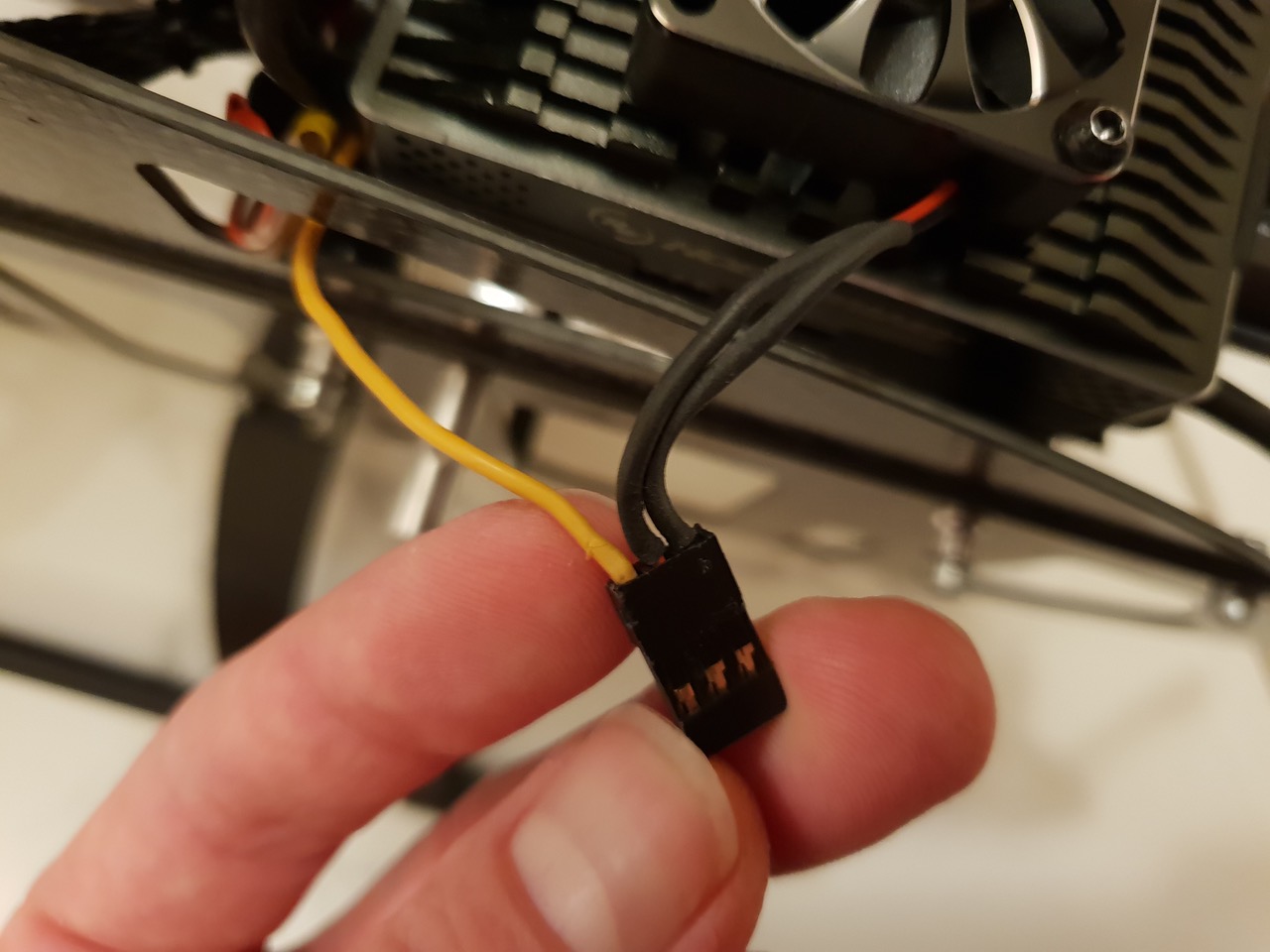 I've connected only orange cable of Telem Uni Cable with programming port of ESC, because + - I'm using for fan with one servo plug.