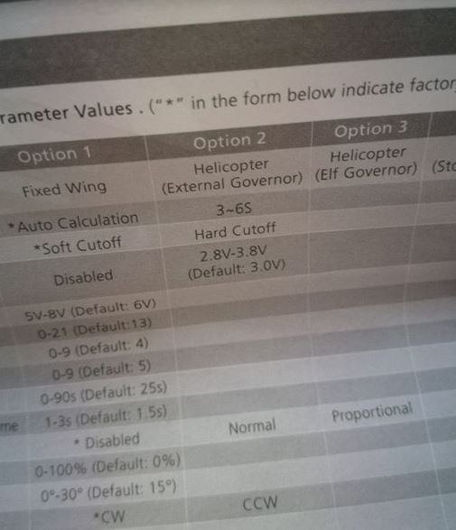 So if I use the governor in the fbl unit I should choose option 2 in the photo?(manual esc hv)?