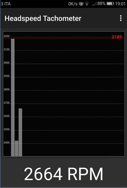 I made a comparison with an app on my phone, and he measures (I think correctly) in hovering at 3,200 rpm,see attachment.