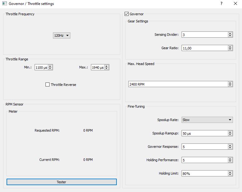 I just noticed one thing that if I disable the governor from a bank if I am at 70% throttle or any other value, the heli takes so many rpms, takes curves and calibrates of the radio, it seems to me, but it seems twice the value , in the sense that the 30 throttle seems to be 60%, the motor is accelerating so much.