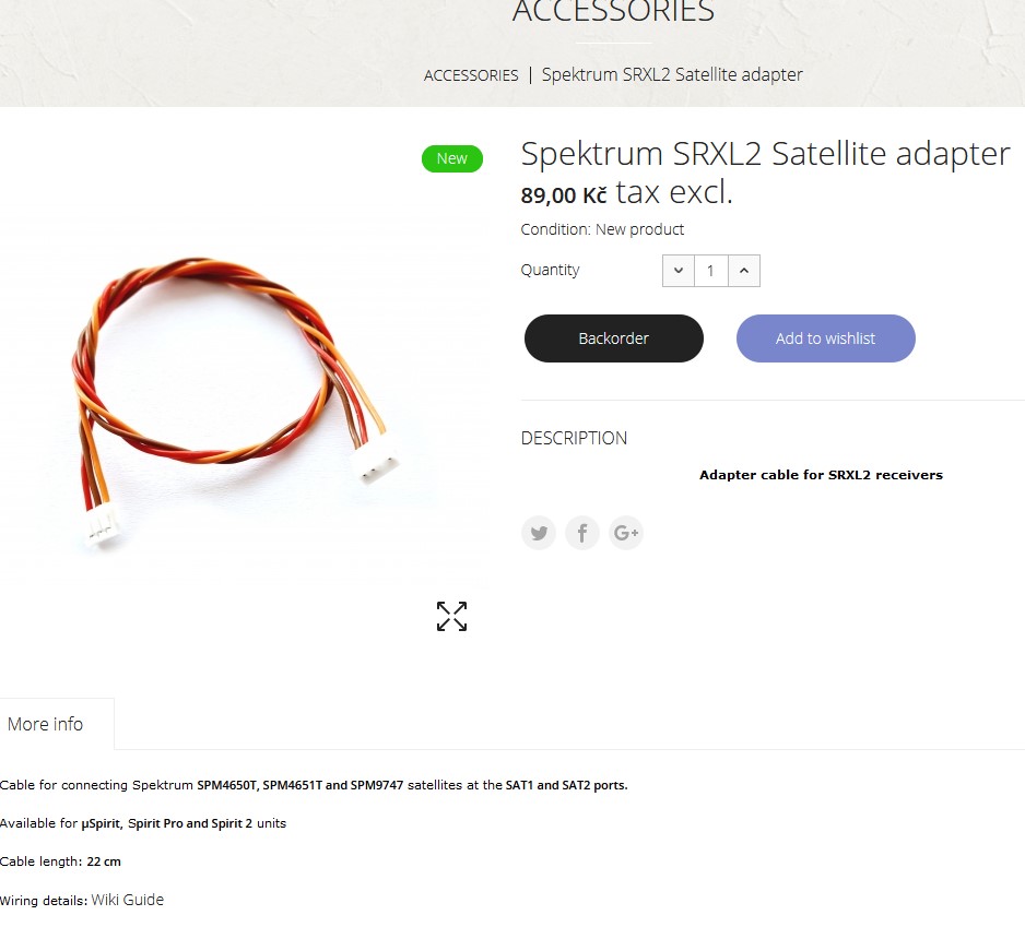 Question about the Spektrum SRXL2 adaptor cable in the shop
