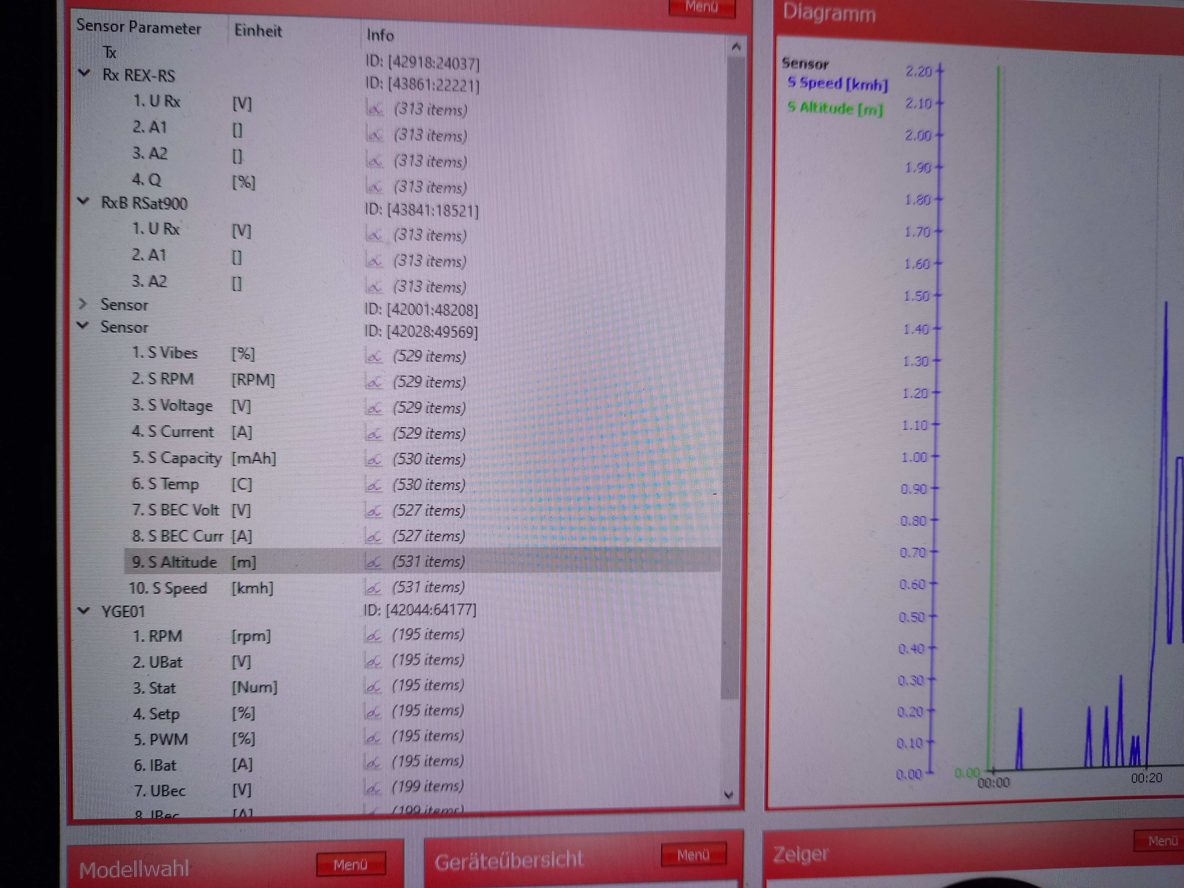 The speed sensor showed changes during this short hover and seemed to work.