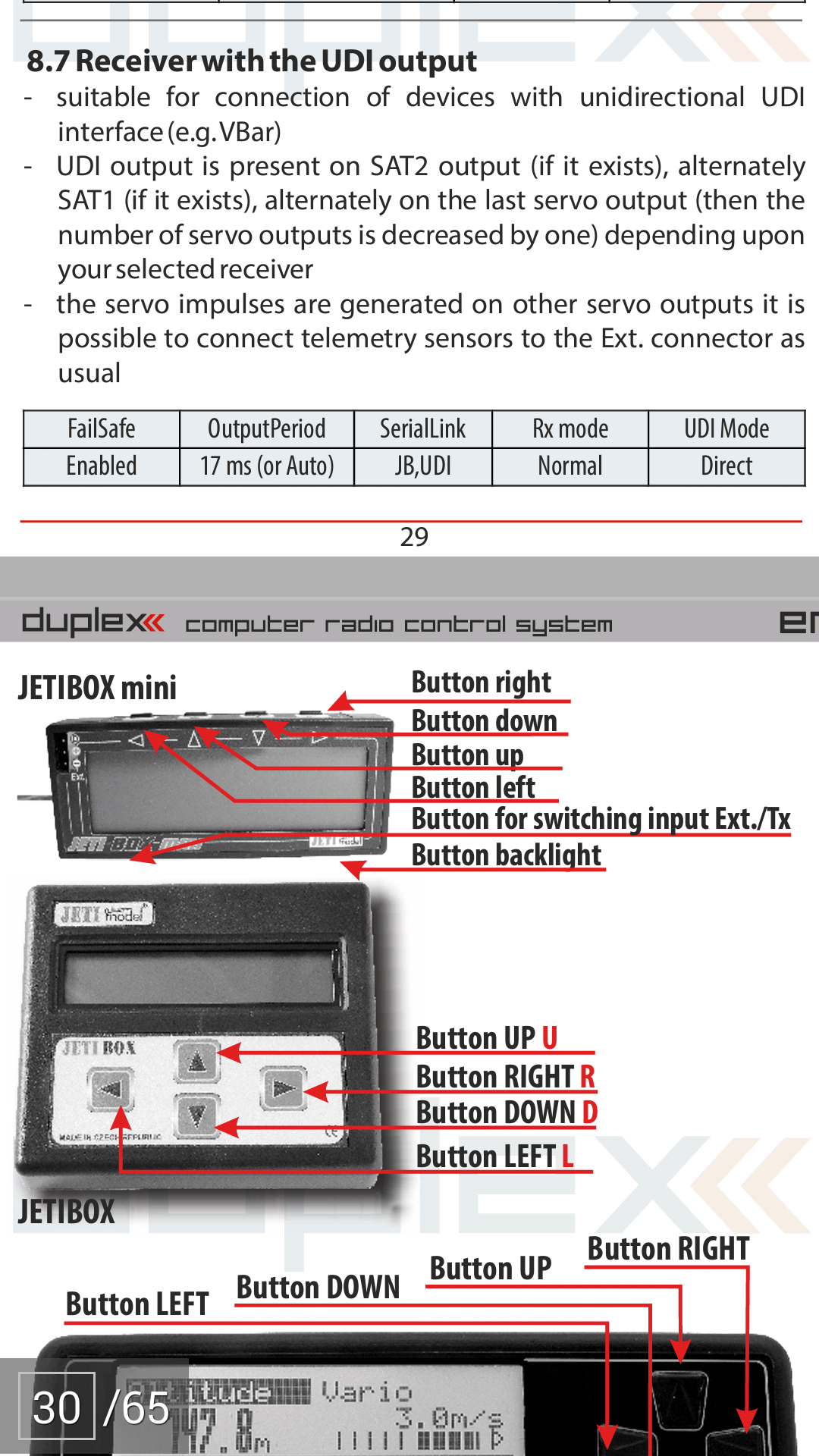 UDI should work out of the box with default Jeti settings.