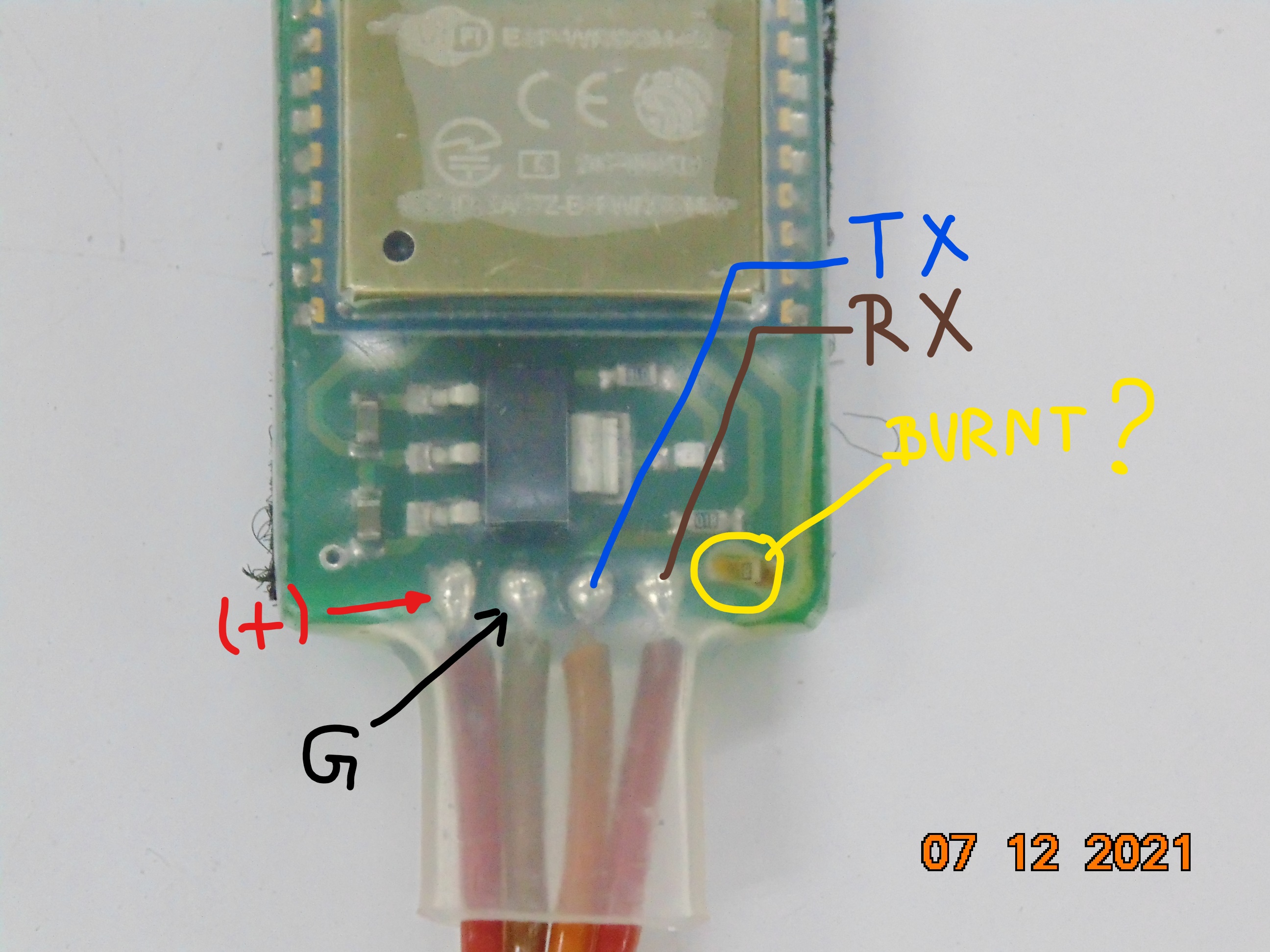 I am not sure it is burnt. I took much clear photo with daylight and when the module is power up. Please see below.