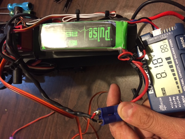 REceiver battery is a 2s lipo, and it has 88% full. see the photos of the setup. the wire is 20awg.