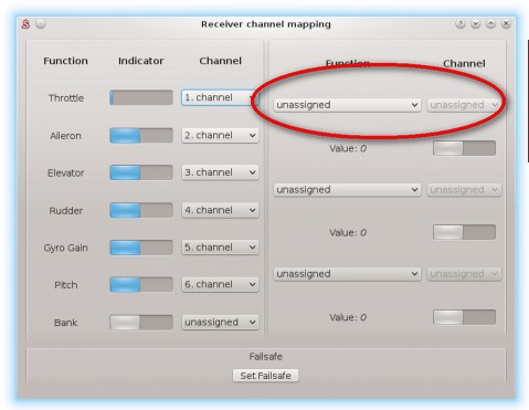 Ich mache das auf der karte General/Channels/ Receiver channel mapping, ich habe die notwendige Funktion auf einem separaten Kanal und ich kümmere mich nicht um die Gyro-Verstärkung (ich habe sie in den Flugmodi eingestellt).