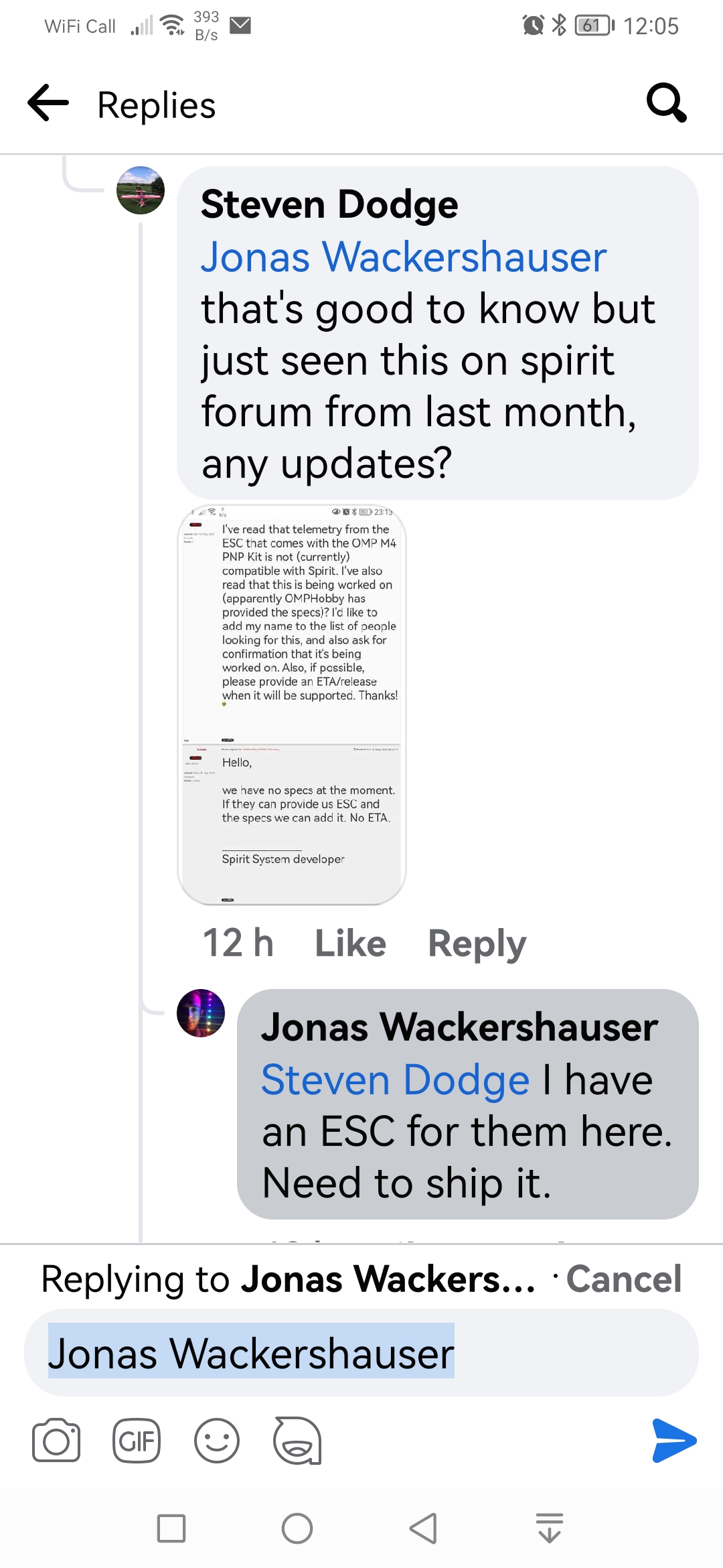 I've read that telemetry from the ESC that comes with the OMP M4 PNP Kit is not (currently) compatible with Spirit. I've also read that this is being worked on (apparently OMPHobby has provided the specs)? I'd like to add my name to the list of people looking for this, and also ask for confirmation that it's being worked on. Also, if possible, please provide an ETA/release when it will be supported. Thanks! 8-)