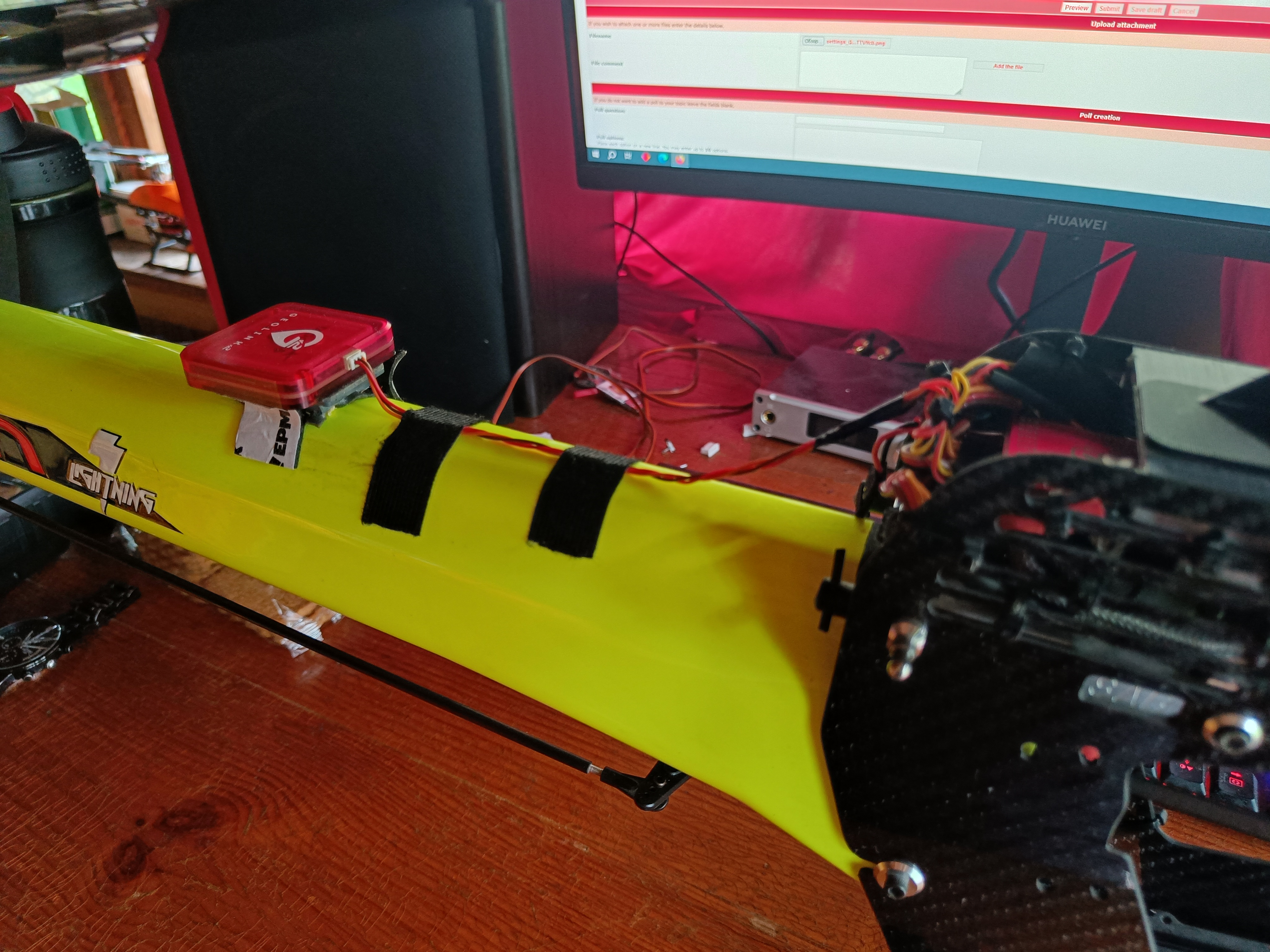 The geolink is fixed strictly according to the instructions on the tail boom, the hole for the altimeter from below is not covered by anything. The distance to the nearest electronics is more than 10cm